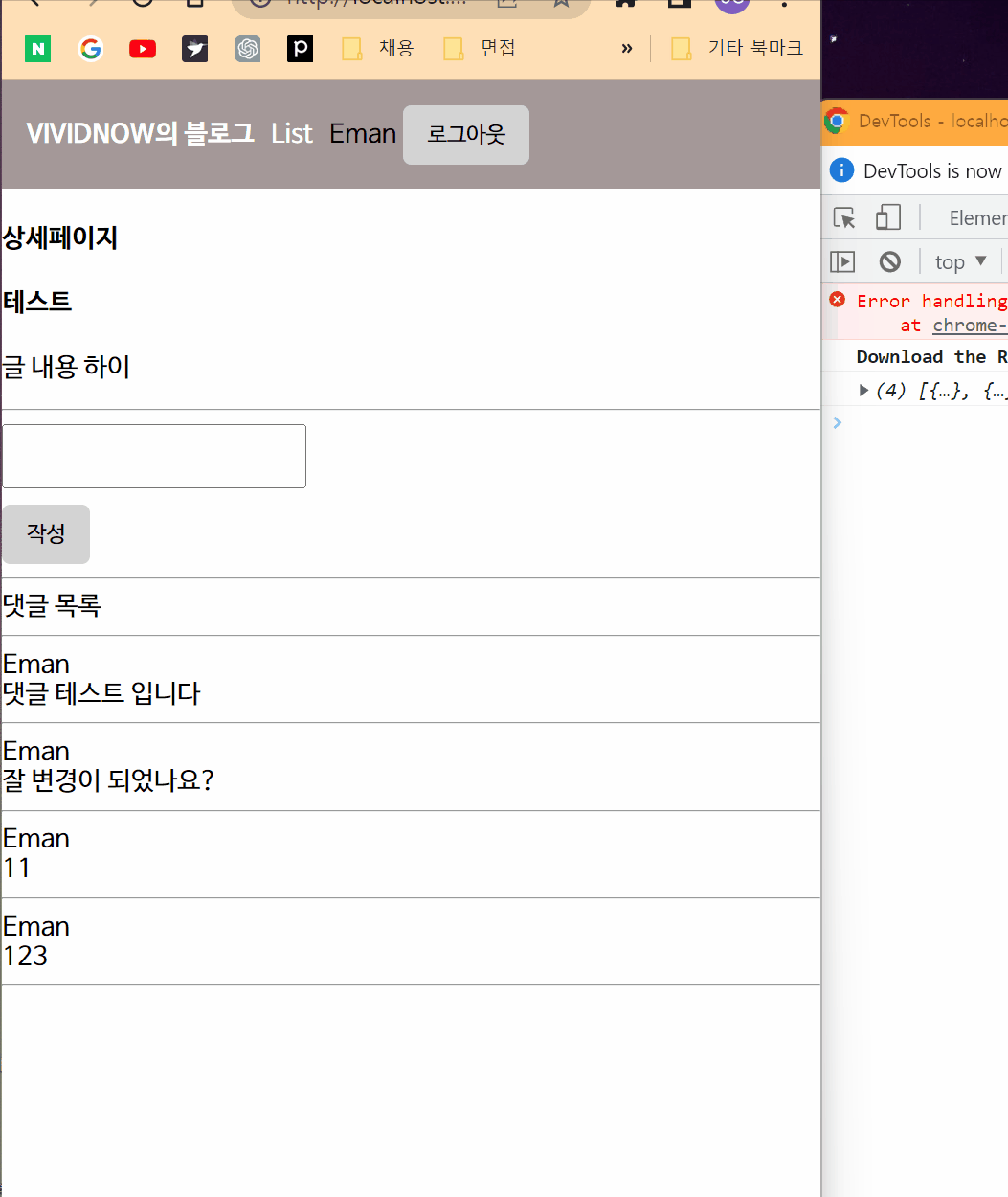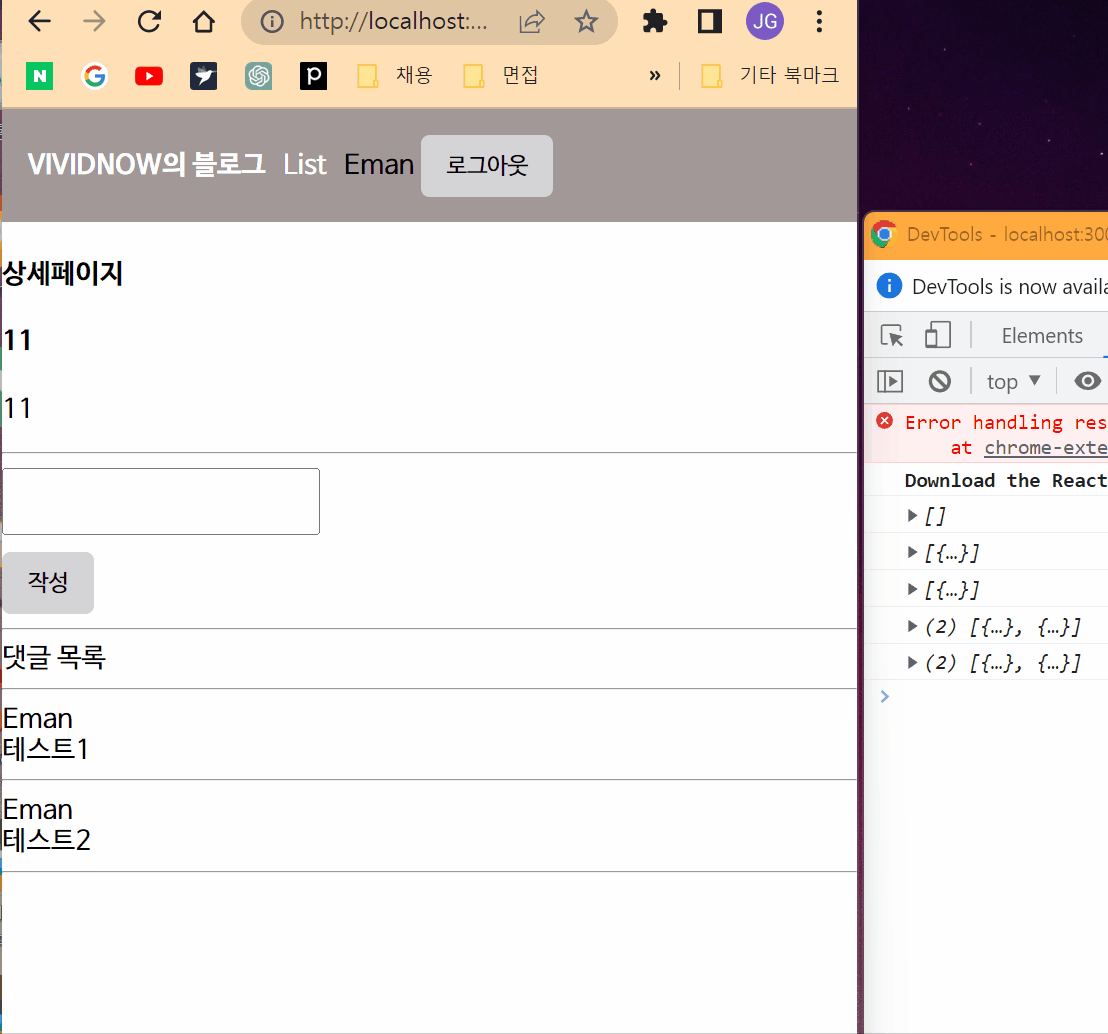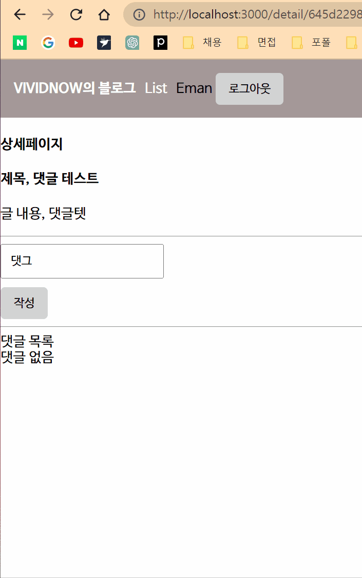 그리고 클라이언트에서는 addComment에서 업데이트 된 배열을 받아 useState에 저장하는 것으로 수정하였다.