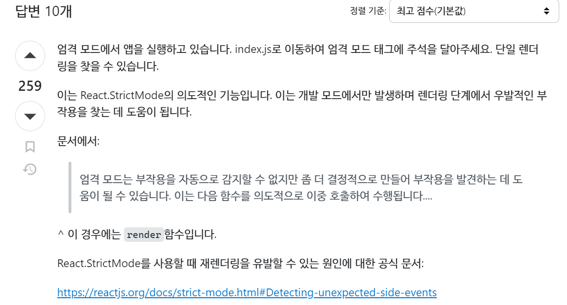 리액트는 strict mode모드가 있어서 개발과정에서 어떤 문제를 찾기 위해 엄격하게 관리할 수 있다고 한다.