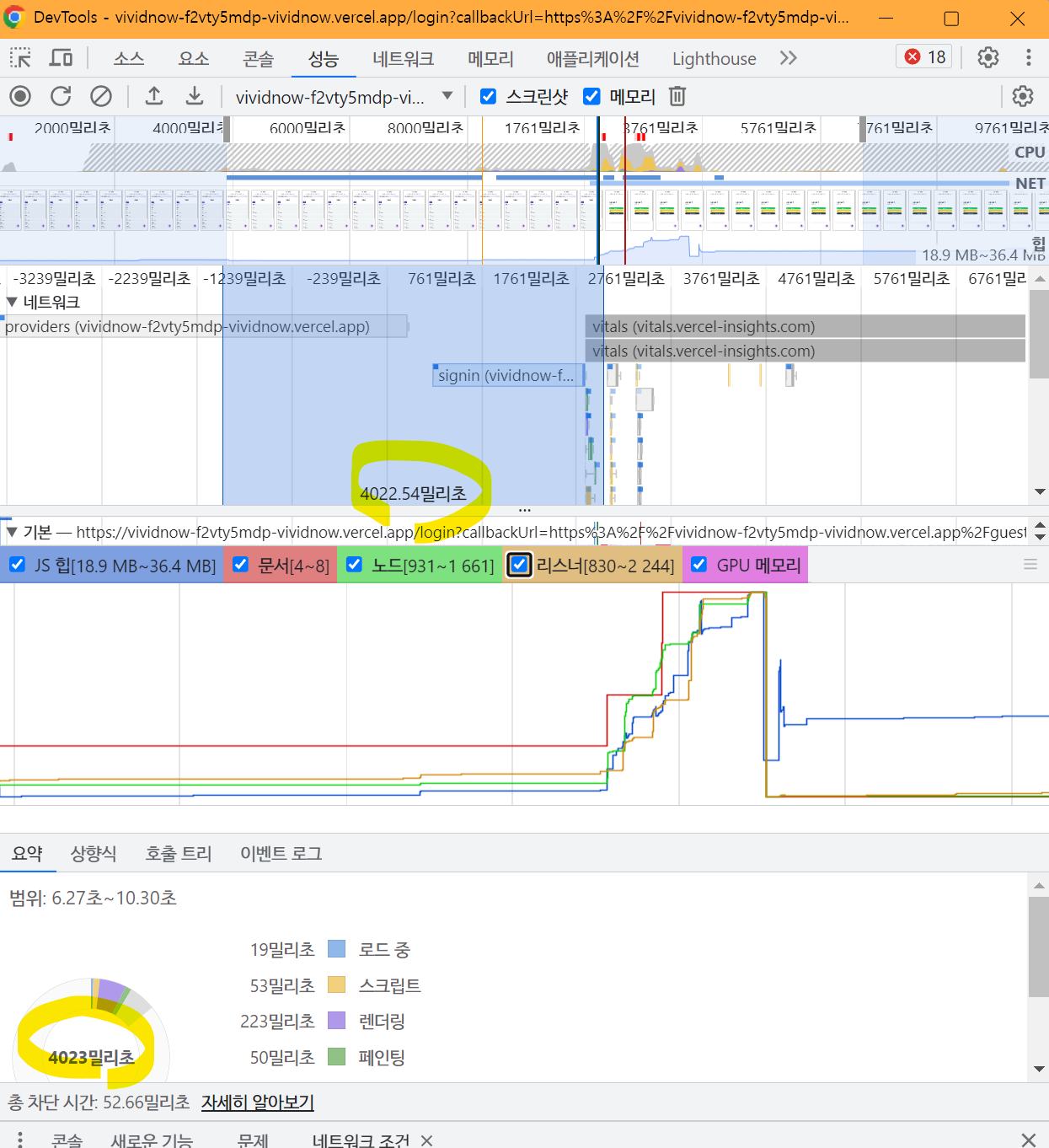 로그인을 위해 도입했던 NextAuth의 성능에 문제가 있는 것으로 추정한다.