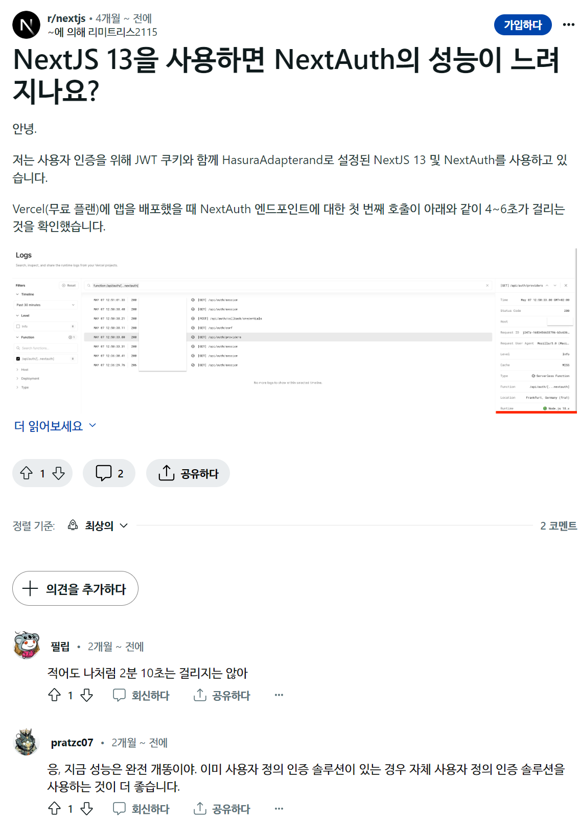 어떤 유저는 NextAuth를 사용하지 않는 것을 제안하고 있다.