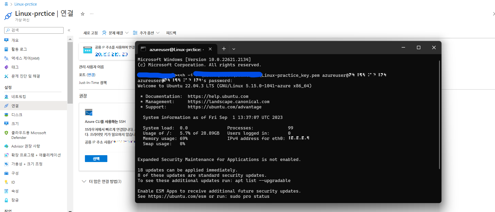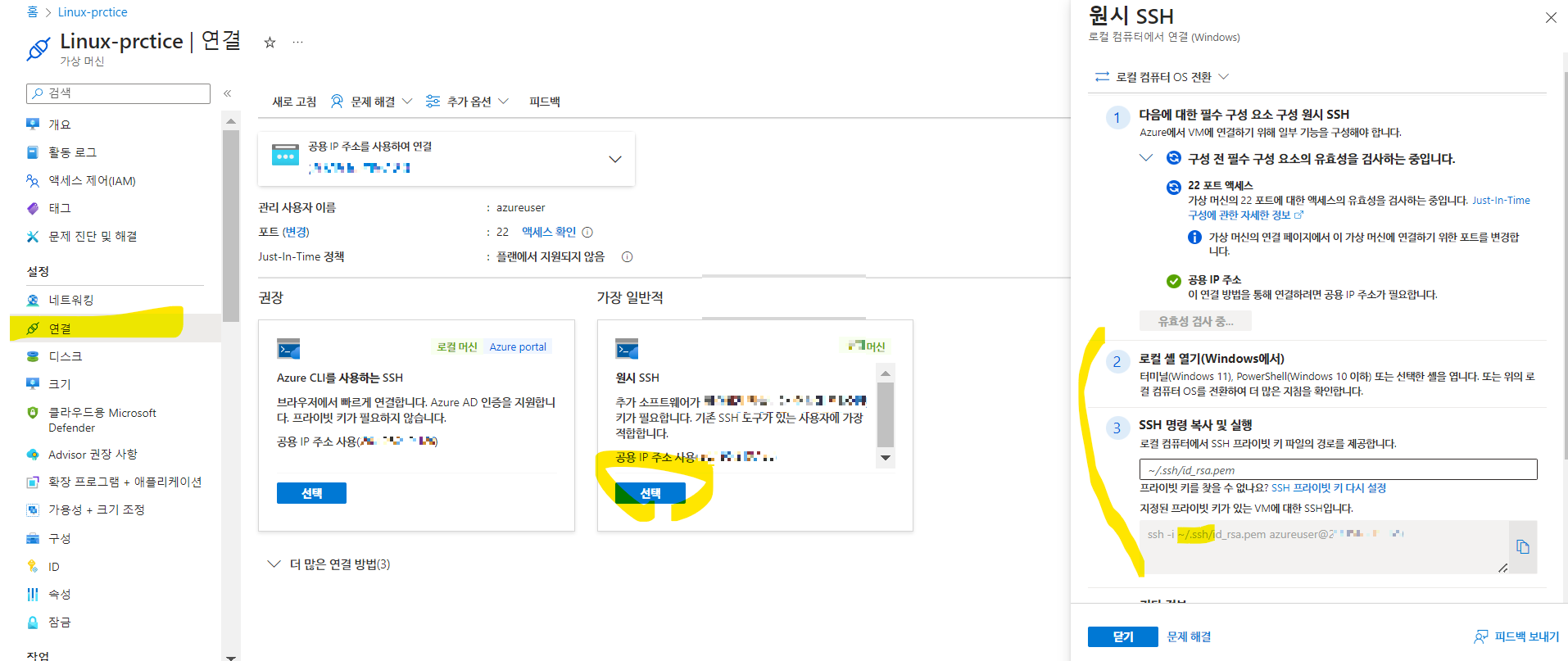 [Azure] 가상 머신에 연결하는 방법 (접속하는 방법) feat. SSH with .pem key