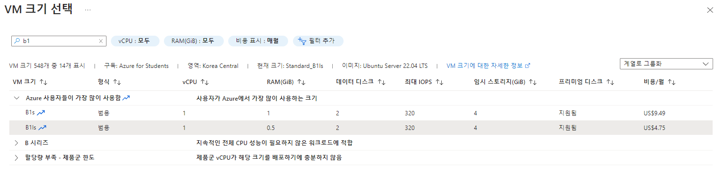 아무튼 사용량을 넘더라도, 학생용 계정에서 B1ls는 별도 추가요금 없다고 해서 걱정은 덜려고 합니다.