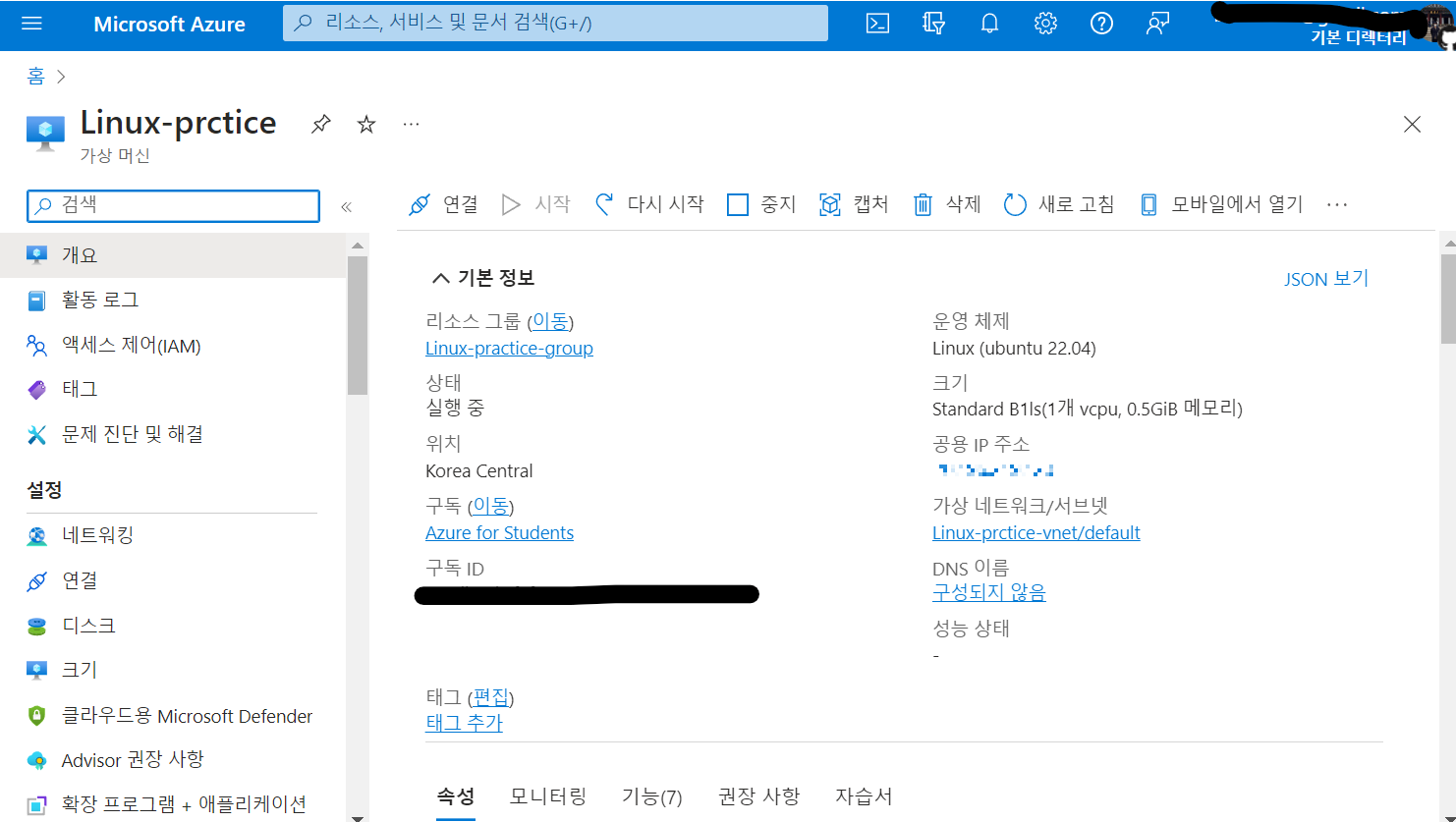 [Azure] 리눅스 VM 배포/연결 및 실습