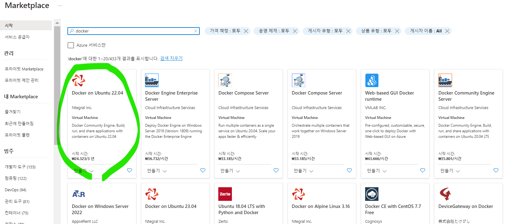 사실 제가 해보려는 우분투 + 도커 조합의 서비스는 이미 Azure에서 구매가 가능합니다.