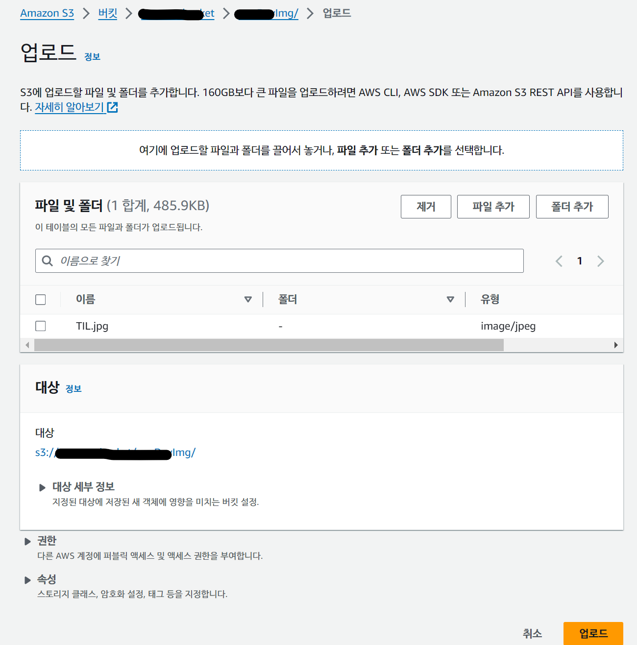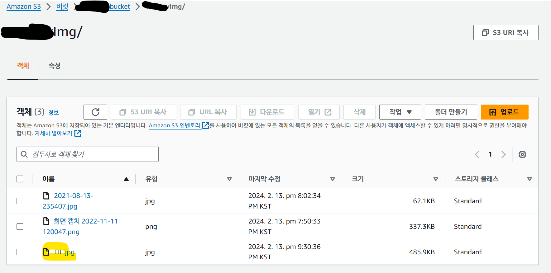 이제, '배포 도메인 이름' 뒤에 업로드한 파일 TIL.jpg를 입력하면