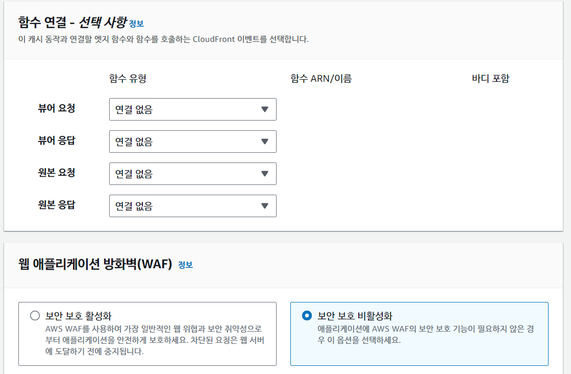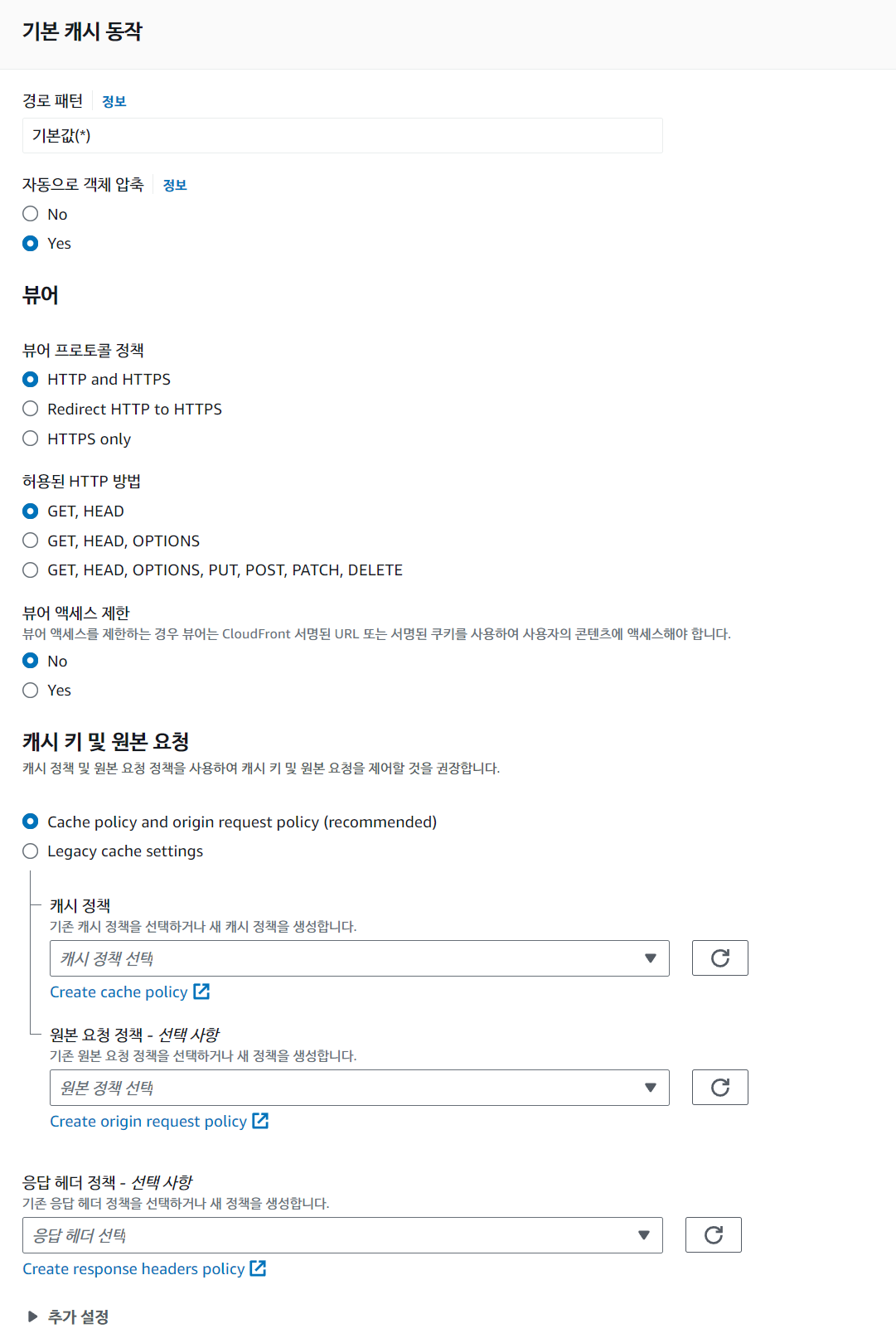 초기 설정이 없다면 'Create New OAC(origin access control)'로 설정하여 S3 원본을 보호한다.