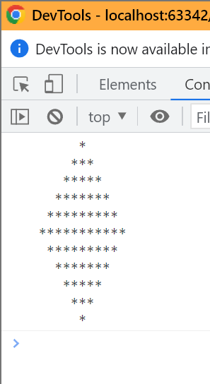 원하는 마름모의 지름(size)을 6이라고 했을 때. 내가 작성한 코드와 그 결과는 다음과 같다.