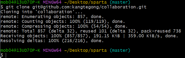 그렇게 되면 임의로 설정한 폴더에 원격저장소가 복제된다.