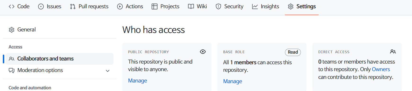 초대장을 수락하면 팀원이 그 저장소에 push가 가능해진다. 이것이 한 가지 방법인데