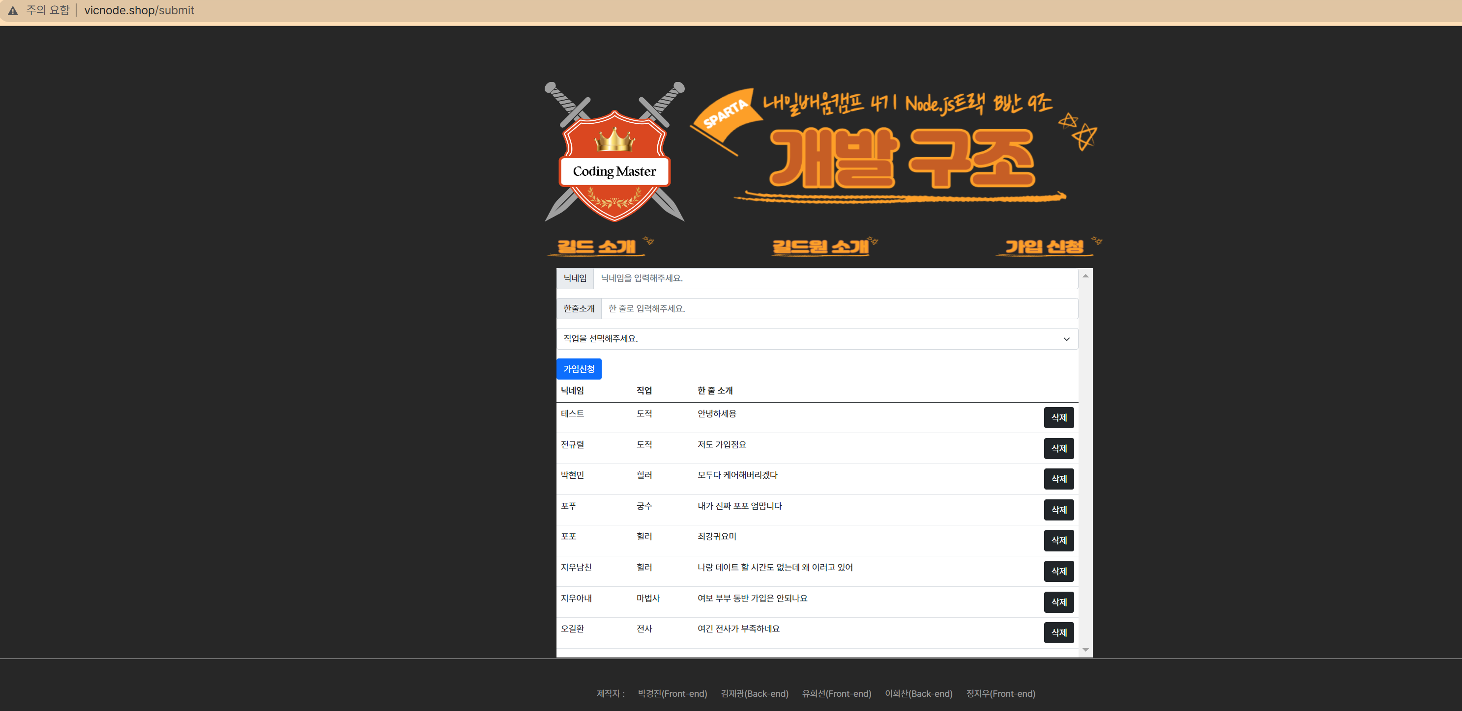 - 핵심적인 다른 페이지에 비하여 약간은 소외당한듯한 '가입신청 페이지'의 경우, 프론트 부분까지 내가 담당해보겠다고 나섰으면 배울 수 있는 게 많았을 것 같은데, 그러질 않아서 아쉽다.