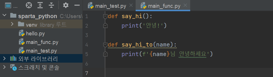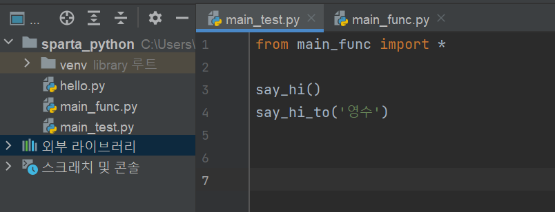 2) main_func 파일에서 say_hi_to 함수만 불러올 경우