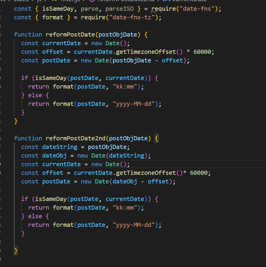 getRaw로 받아오는 덕분에 정보가 좀 달라져서, 날짜를 관리하는 함수도 새로 추가했다.