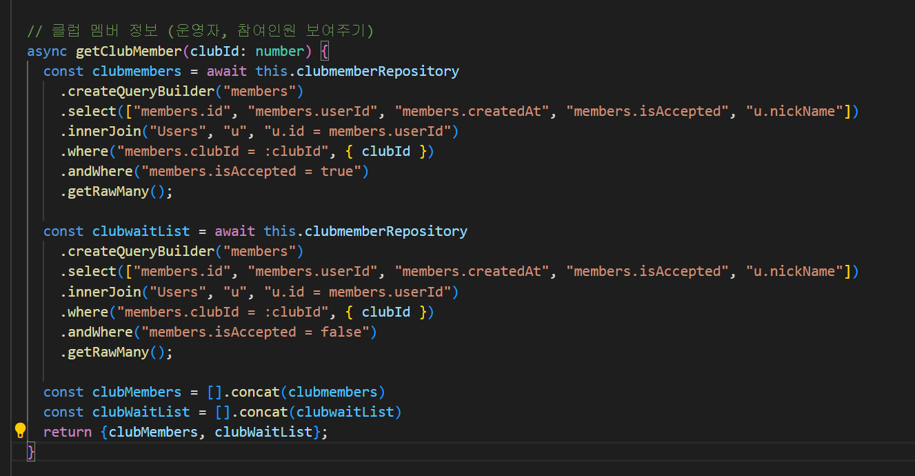 이 작업은 클럽 멤버스 엔티티를 기반으로한 리포지토리에서 값을 불러오면 된다.